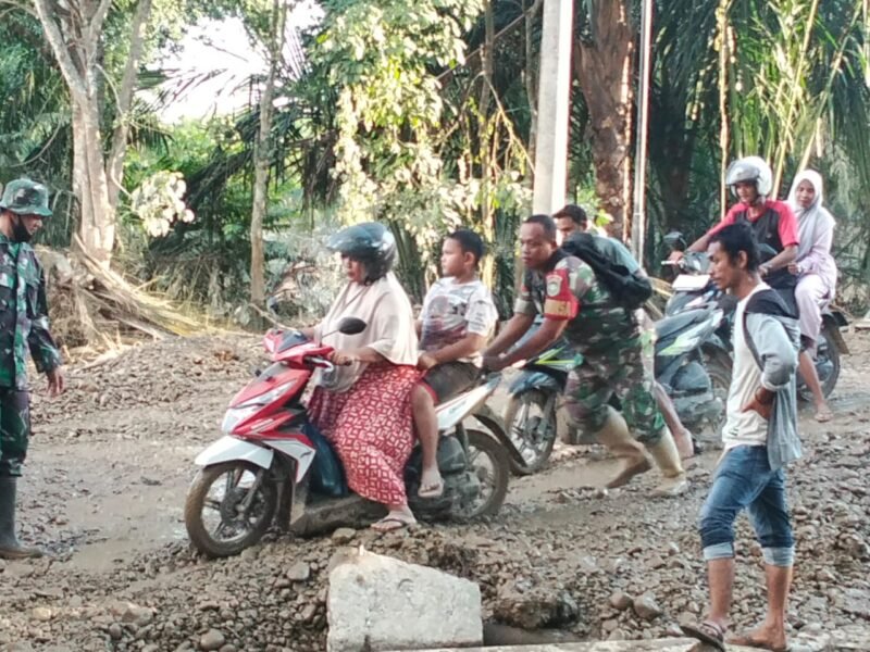 Melihat kondisi tersebut, Babinsa Koramil Tripa Makmur, Koptu Nazarudin, sigap membantu para pengendara yang mengalami kendala. Babinsa turut mendorong kendaraan yang mogok akibat genangan air dan lumpur, serta mengarahkan pengguna jalan agar berhati-hati ketika melintasi area yang licin.