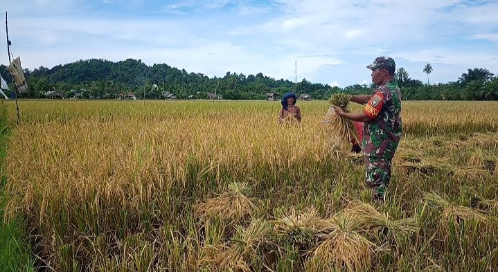 Padi yang telah memasuki masa panen tersebut merupakan milik Kelompok Tani Udep Baro. Dengan menggunakan alat sederhana, Sertu M. Hasan ikut memotong batang padi bersama para petani sebagai bentuk dukungan terhadap ketahanan pangan di wilayah binaannya.
