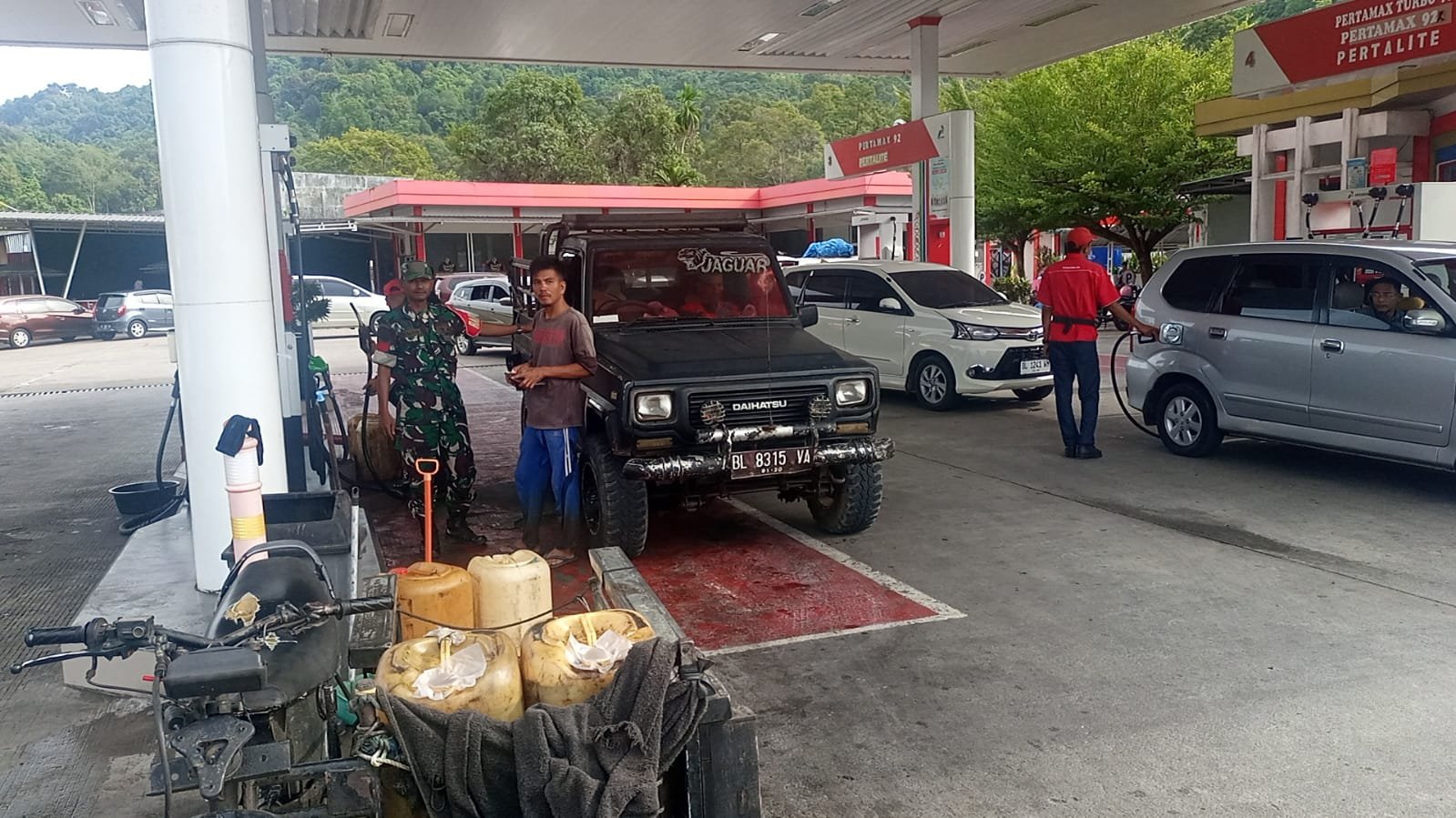 Babinsa Jaya Amankan Arus Lalu Lintas Lebaran di SPBU Lamno