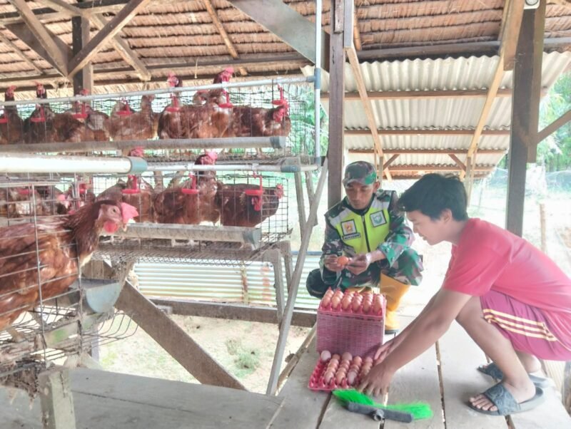 Nagan Raya – Babinsa Posramil Kuala Pesisir melaksanakan Pendampingan Dengan Wira usaha Peternak ayam Petelur di Desa Padang Panyang Kecamatan Kuala Pesisir Kabupaten Nagan Raya, Sabtu(14/03/2026).