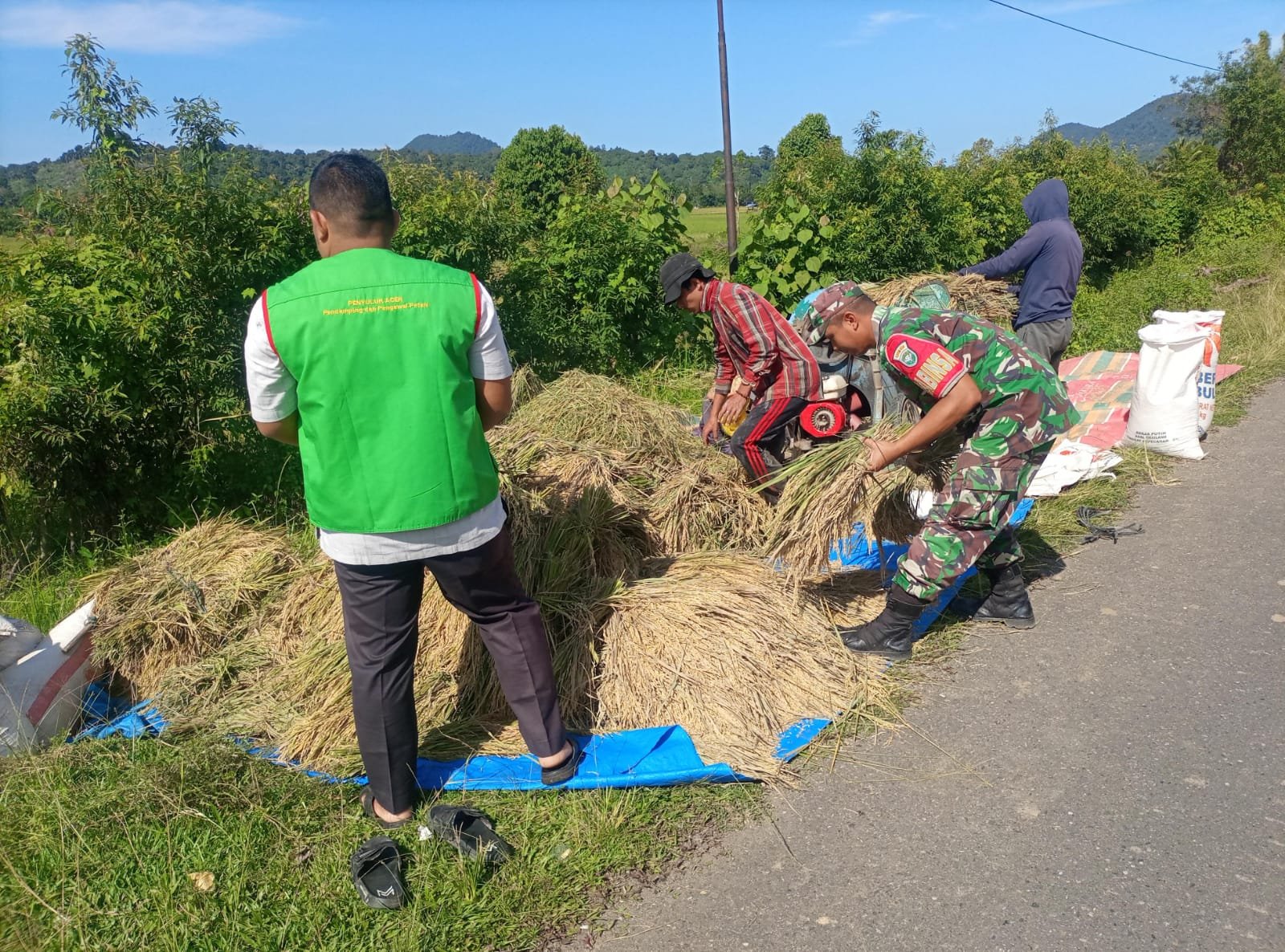 Selain membantu secara langsung, Babinsa dan PPL juga berdialog dengan petani mengenai perawatan tanaman dan pengelolaan hasil panen agar kualitas gabah tetap terjaga. Hal ini penting untuk menunjang kesejahteraan petani ke depan.