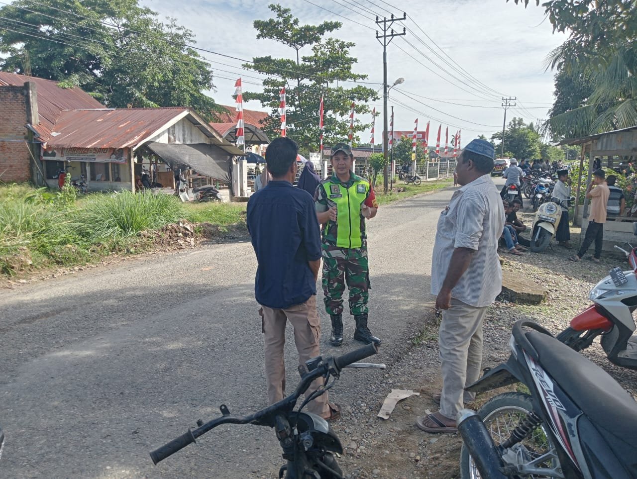 Kerumunan tersebut menarik perhatian karena puluhan warga terlihat berdiri di sepanjang badan jalan seolah menyaksikan atau menunggu sesuatu. Menindaklanjuti hal tersebut, Serda Kurniadi langsung mendatangi lokasi untuk memastikan situasi tetap aman dan kondusif.