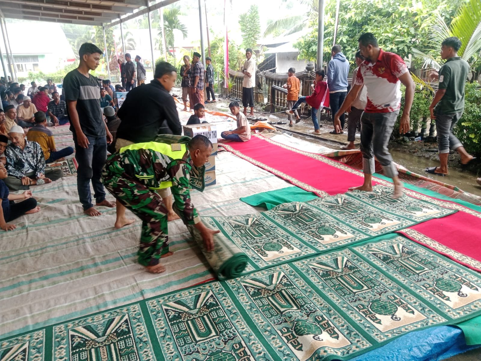 Persiapan dilakukan sejak pagi, mulai dari menata tikar hingga menyusun rangka tempat acara. Serda Suherman terjun langsung membantu warga, memastikan semua berjalan sesuai rencana. “Acara Maulid ini bukan hanya kegiatan keagamaan, tetapi juga menjadi momentum mempererat persaudaraan warga. Kami TNI selalu siap hadir mendukung,” ujar Serda Suherman.