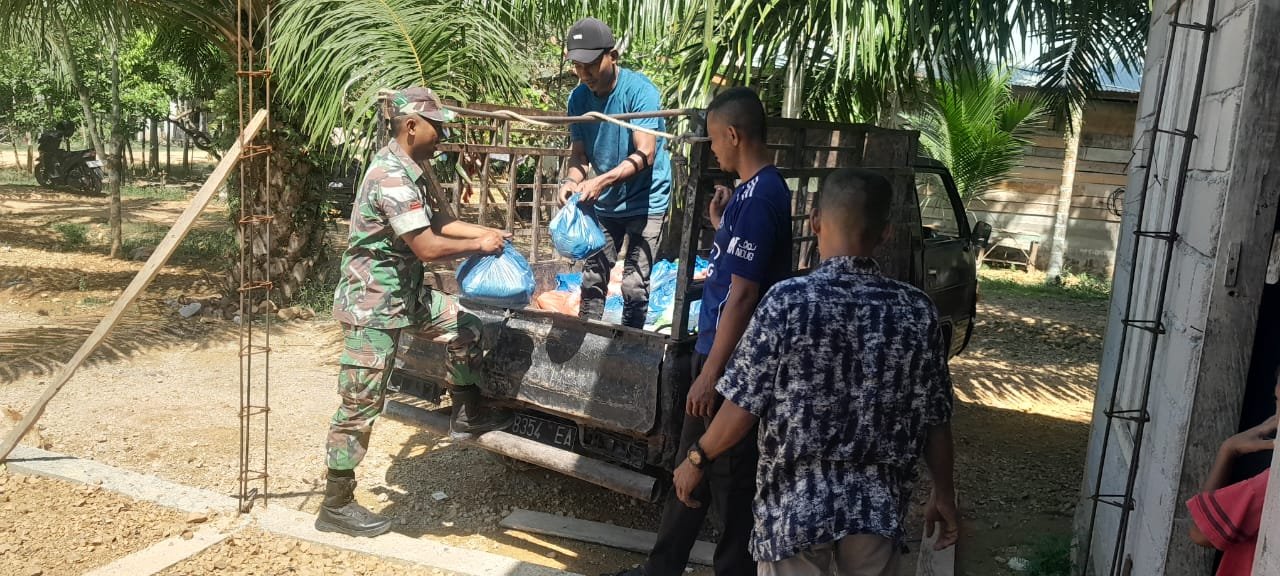 Babinsa Koramil 03/Setia Bakti Bantu Distribusi Sembako BUMG untuk Warga Lhok Bot Saat Ramadan