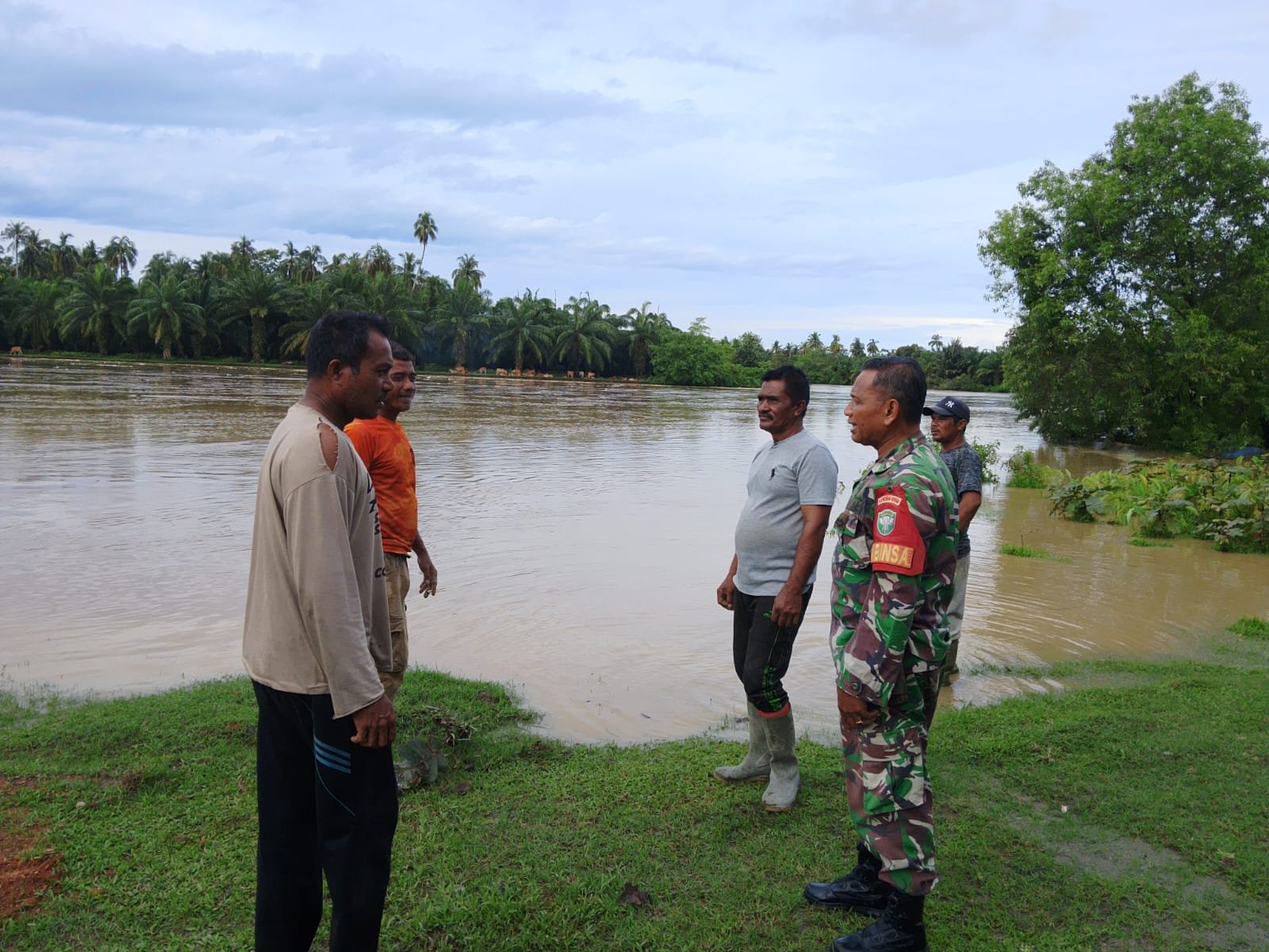 ACEH JAYA – Babinsa Koramil 06/Teunom Kodim 0114/Aceh Jaya, Serka M. Daud, bersama aparatur desa dan masyarakat melaksanakan peninjauan langsung ke aliran Sungai Krueng Teunom di Desa Blang Baro, Kecamatan Teunom, Sabtu (14/02/2026).