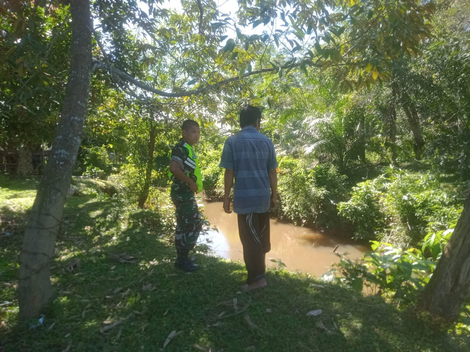 ACEH BARAT — Babinsa Koramil 11/WT Serka Ongku bersama warga melakukan pengecekan kondisi aliran sungai di Desa Aleu Bilie, Kecamatan Woyla Timur, setelah hujan deras mengguyur wilayah tersebut. Kegiatan ini dilakukan sebagai langkah antisipasi untuk memastikan tidak terjadi kerusakan maupun potensi bencana seperti banjir atau longsor, Sabtu (15/11/2025).