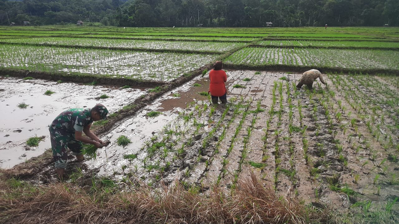 Di tengah musim tanam yang mulai berjalan, Serda Yunadi terjun langsung ke sawah untuk membantu petani menyiapkan dan menanam bibit padi. Dukungan ini sekaligus bertujuan memastikan aktivitas pertanian berjalan lancar sehingga ketahanan pangan di wilayah setempat tetap terjaga.