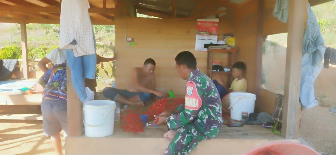 Babinsa Koramil Jaya Bantu Warga Panen Cabai di Desa Lamtui