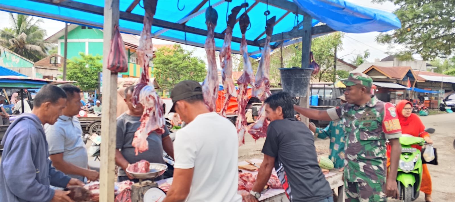ACEH JAYA – Untuk memastikan stabilitas harga serta keamanan bahan pangan yang beredar di masyarakat, Babinsa Koramil 01/Jaya Kodim 0114/Aceh Jaya, Koptu Rahmat Putra, melaksanakan komunikasi sosial dengan para pedagang daging di Pasar Lamno, Kecamatan Jaya, Kamis (19/3/2026).