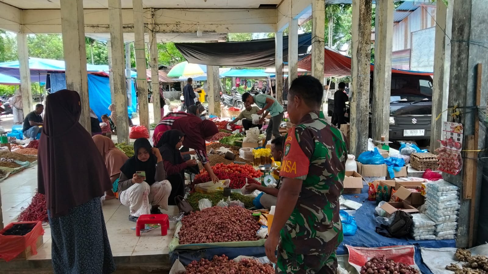ACEH JAYA – Pemantauan harga kebutuhan pokok terus dilakukan aparat kewilayahan guna memastikan stabilitas harga di tengah aktivitas masyarakat. Pada Kamis (23/04/2026), personel Babinsa di wilayah Kecamatan Pasie Raya, Kabupaten Aceh Jaya, melaksanakan pengecekan langsung terhadap harga sejumlah bahan pokok di pasar tradisional setempat.