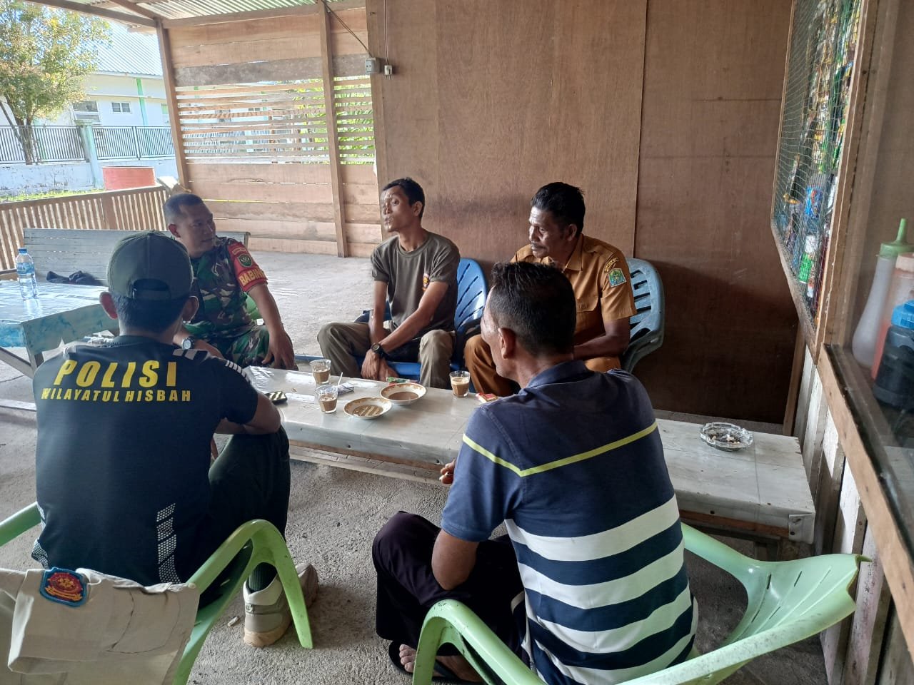 ACEH JAYA — Babinsa Posramil Pasie Raya Kodim 0114/Aceh Jaya Sertu Syamsul melaksanakan komunikasi sosial bersama pegawai kantor kecamatan dan anggota Satpol PP Kecamatan Pasie Raya, Selasa (09/12/2025). Pertemuan tersebut membahas kondisi cuaca yang mulai mengalami hujan deras dalam beberapa hari terakhir.