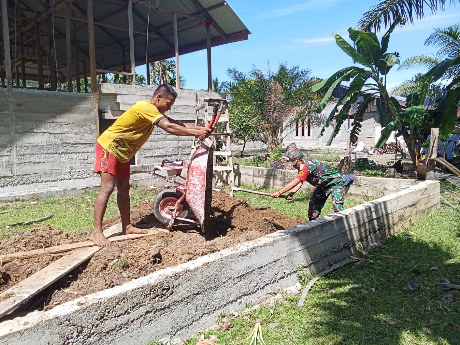 Kegiatan ini dilakukan sebagai bentuk kemanunggalan TNI dengan rakyat yang terus terjalin erat di setiap aspek kehidupan bermasyarakat. Dalam kegiatan tersebut, Babinsa tak segan-segan ikut memanggul tanah dan batu kerikil untuk menimbun pondasi rumah. Dengan penuh semangat kebersamaan, Babinsa bersama warga bahu-membahu menyelesaikan pekerjaan agar pembangunan rumah dapat segera dilanjutkan ke tahap berikutnya.
