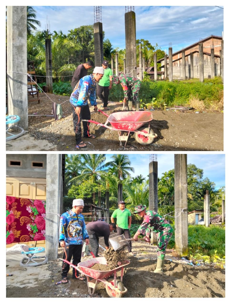 ACEH BARAT — Koptu Abdan, Babinsa Posramil 12/Panton Reu Kodim 0105/Aceh Barat, melaksanakan kegiatan gotong royong bersama warga binaan di Gampong Meutulang, Kecamatan Panton Reu, Kabupaten Aceh Barat, Kamis (18/12/2025).