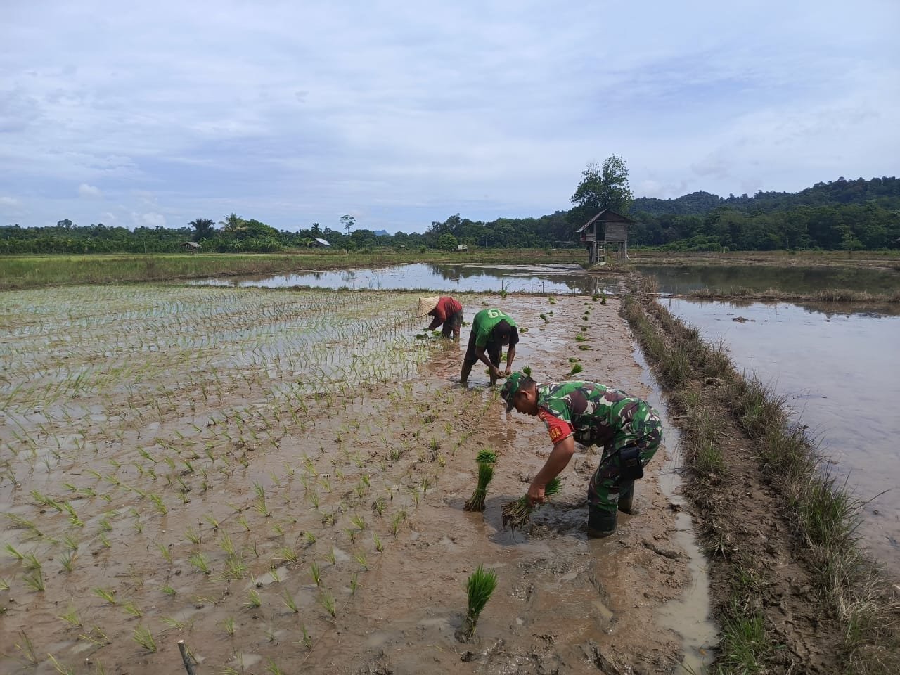 Babinsa Posramil Pasie Raya Dampingi Petani Tanam Padi di Desa Ceuraceu