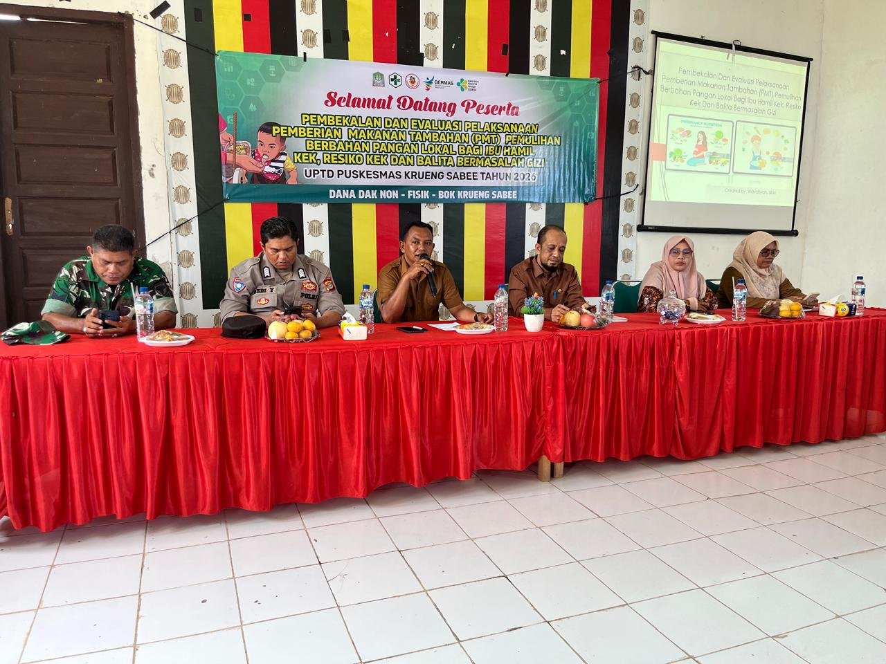 ACEH JAYA – Upaya meningkatkan kesehatan masyarakat, khususnya ibu hamil dan balita, terus diperkuat melalui berbagai program berbasis gizi di tingkat kecamatan. Salah satunya melalui kegiatan Pembekalan dan Evaluasi Pelaksanaan Pemberian Makanan Tambahan (PMT) Pemulihan berbahan pangan lokal yang digelar di Aula Kecamatan Krueng Sabee, Kabupaten Aceh Jaya, Selasa (28/4/2026) pukul 09.30 WIB.