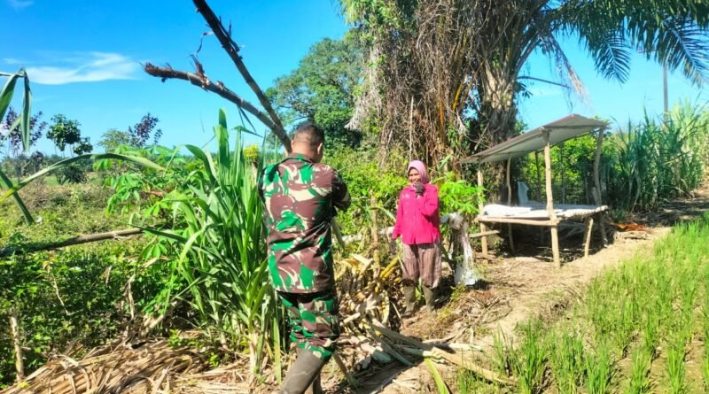 ACEH BARAT – Sertu Agustino, Babinsa Koramil 07/Johan Pahlawan, Kodim 0105/Aceh Barat, memberikan pemahaman kepada warga Desa Gampa