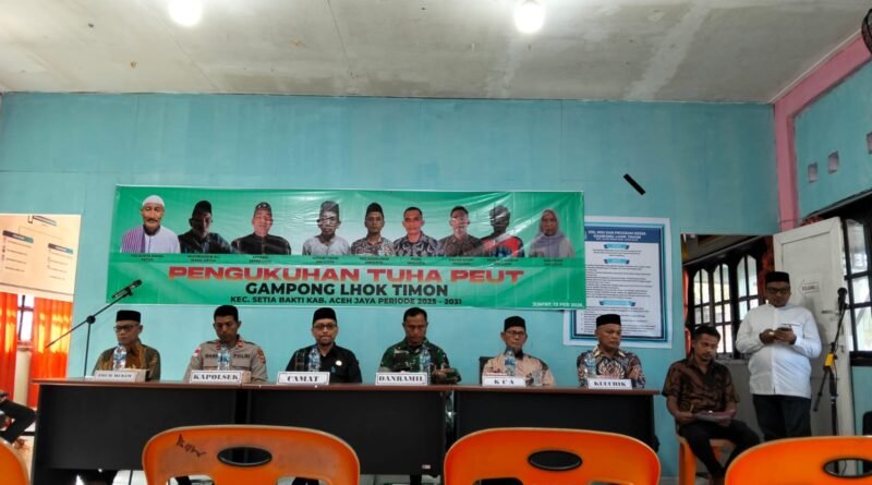 ACEH JAYA — Pelantikan dan pengukuhan Tuha Peut Desa Lhoktimon, Kecamatan Setia Bakti, Kabupaten Aceh Jaya, dilaksanakan di