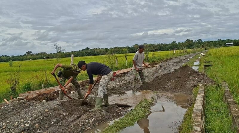 Selangkapnya......Aceh Barat – Di ujung Desa Pasi Aceh, derap langkah prajurit menyatu dengan warga. Talut Penahan Timbunan yang