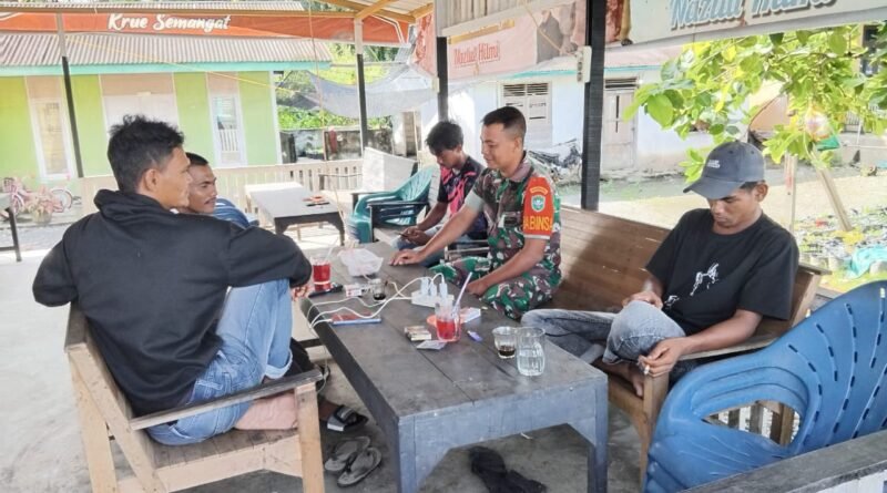 ACEH JAYA – Babinsa Posramil Darul Hikmah Kodim 0114/Aceh Jaya, Sertu Hasan, melaksanakan sosialisasi rekrutmen penerimaan Sekolah Calon