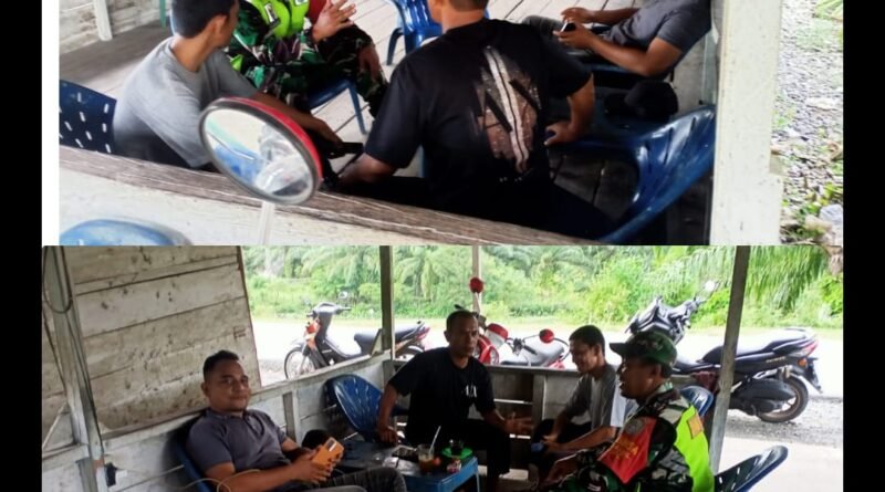ACEH JAYA – Babinsa Koramil 03/Setia Bakti Kodim 0114/Aceh Jaya, Praka Thole, melaksanakan kegiatan Komunikasi Sosial (Komsos) bersama