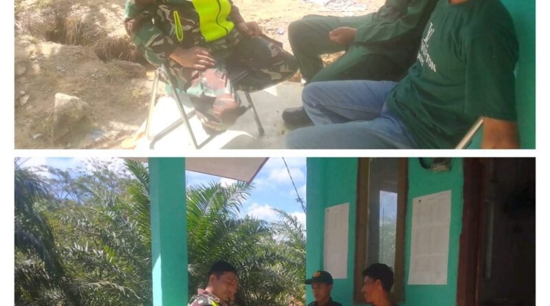 ACEH BARAT — Babinsa Koramil 08/Arongan Lambalek Kodim 0105/Aceh Barat, Serda Feri Irawan, melaksanakan kegiatan komunikasi sosial (komsos)