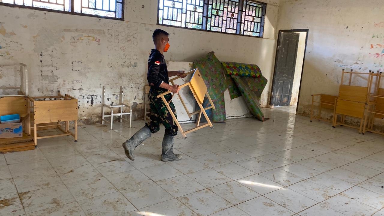 Selangkapnya......Aceh Tamiang – Prajurit Batalyon Infanteri 117/Ksatria Yudha melaksanakan kegiatan pembersihan di Polindes (Poliklinik Desa) Alur Manis, Kecamatan