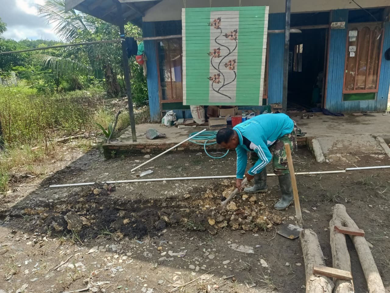 Selangkapnya......BARITO KUALA – Anggota Satgas TMMD Ke-126 Kodim 1005/Barito Kuala, Serda Harmoko, menunjukkan dedikasinya kepada masyarakat dengan aksi