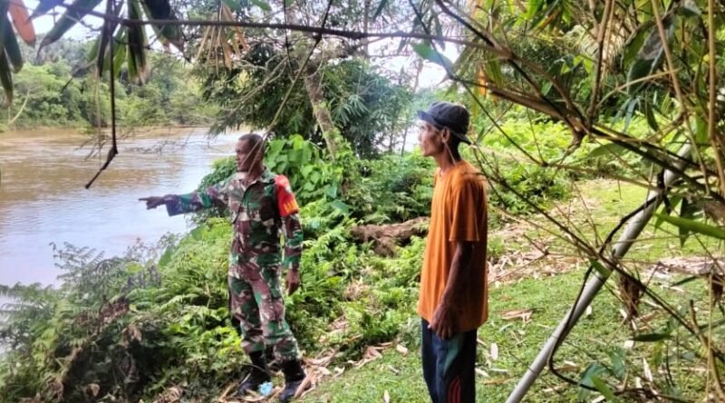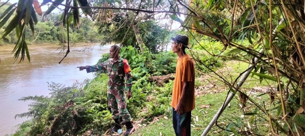 Babinsa dan Warga Pantau Debit Air Sungai untuk Antisipasi Banjir