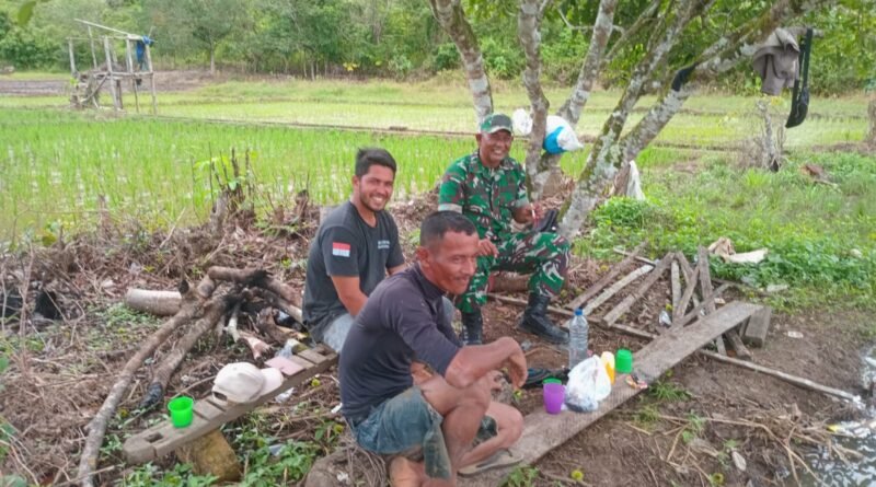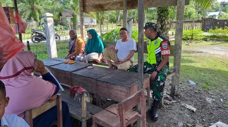 ACEH BARAT — Dengan senyum ramah dan sikap penuh keakraban, Babinsa Koramil 11/Woyla Timur, Serda Ilham, menyapa dan