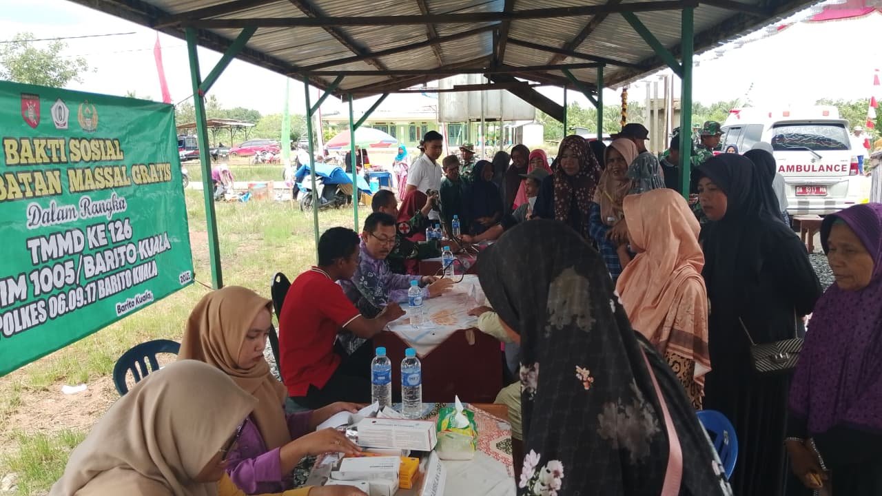 Selangkapnya......BARITO KUALA – Kegiatan TNI Manunggal Membangun Desa (TMMD) Ke-126 Kodim 1005/Barito Kuala kembali diwarnai dengan aksi sosial