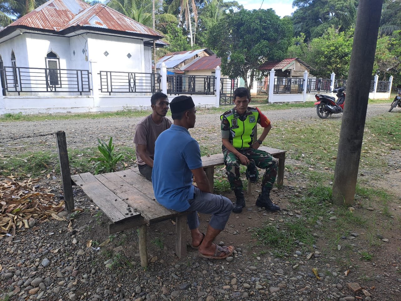 Selangkapnya......ACEH BARAT – Babinsa Koramil 11/Woyla Timur, Sertu Iwan Palentino, rutin melaksanakan kegiatan komunikasi sosial (komsos) dan sambang
