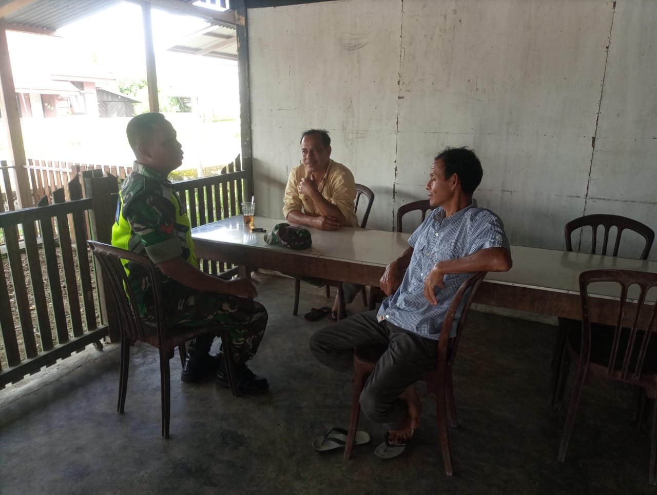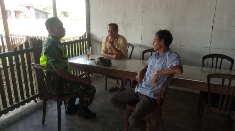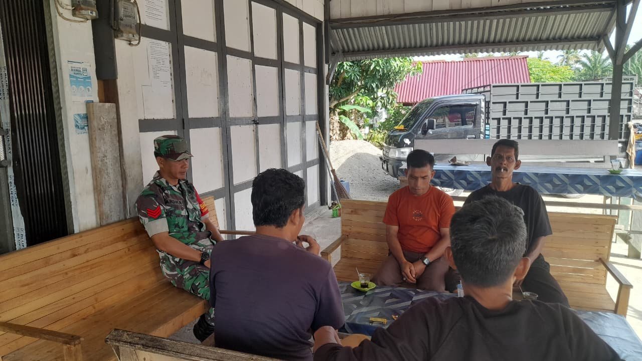 ACEH JAYA – Babinsa Koramil 01/Jaya, Koptu Aris Kartiko, melaksanakan kegiatan komunikasi sosial (Komsos) untuk memantau perkembangan situasi