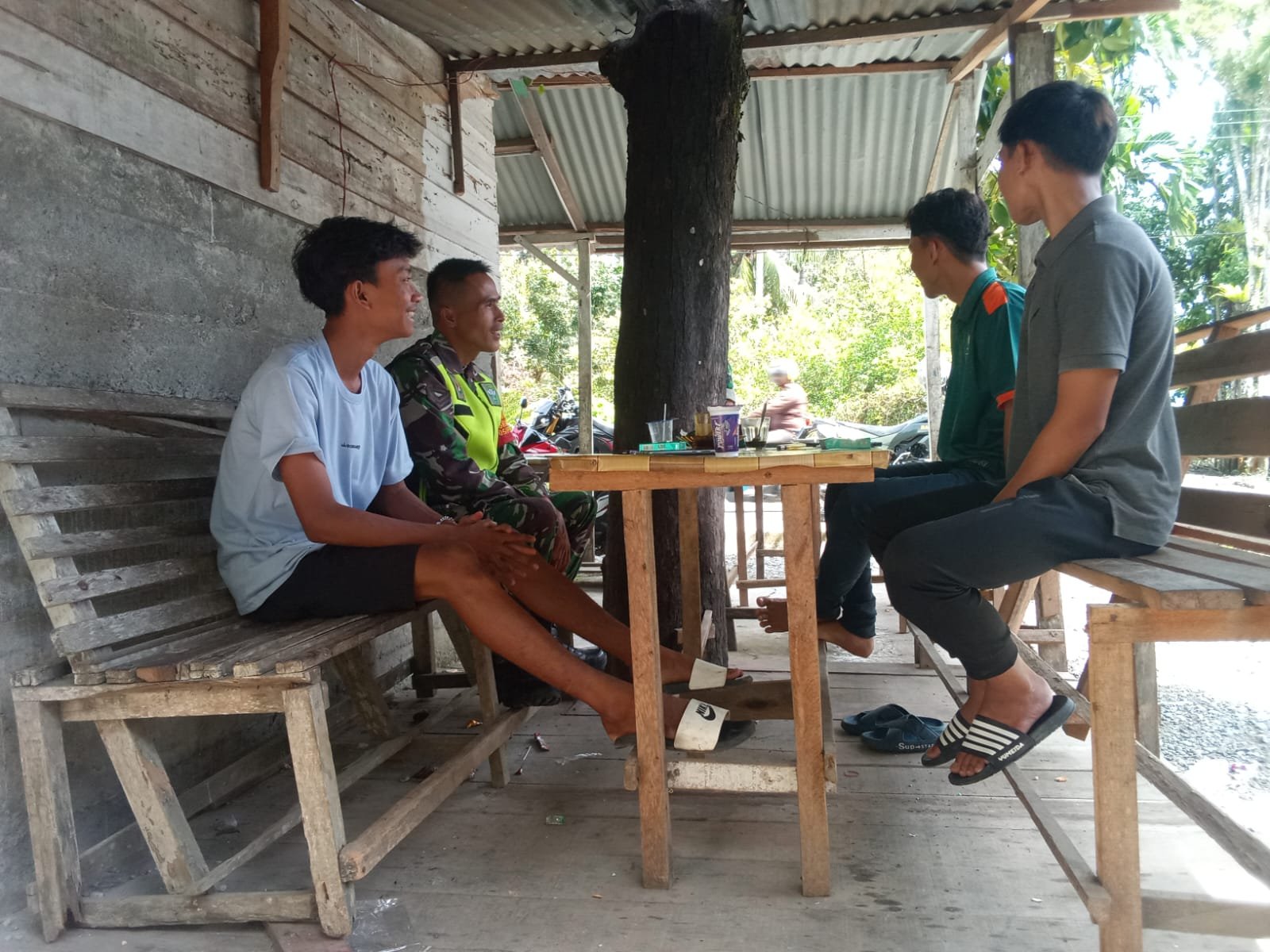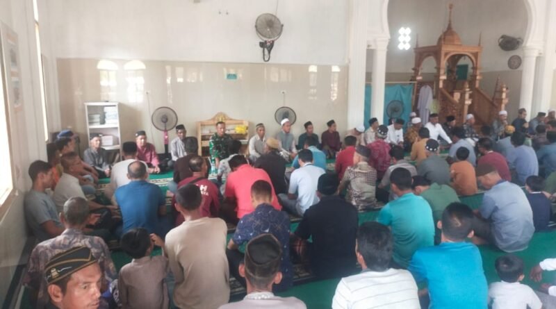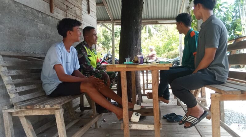 ACEH JAYA – Babinsa Koramil 05/Panga Kodim 0114/Aceh Jaya, Serka Faisal, memberikan pembekalan Wawasan Kebangsaan (Wasbang) kepada para