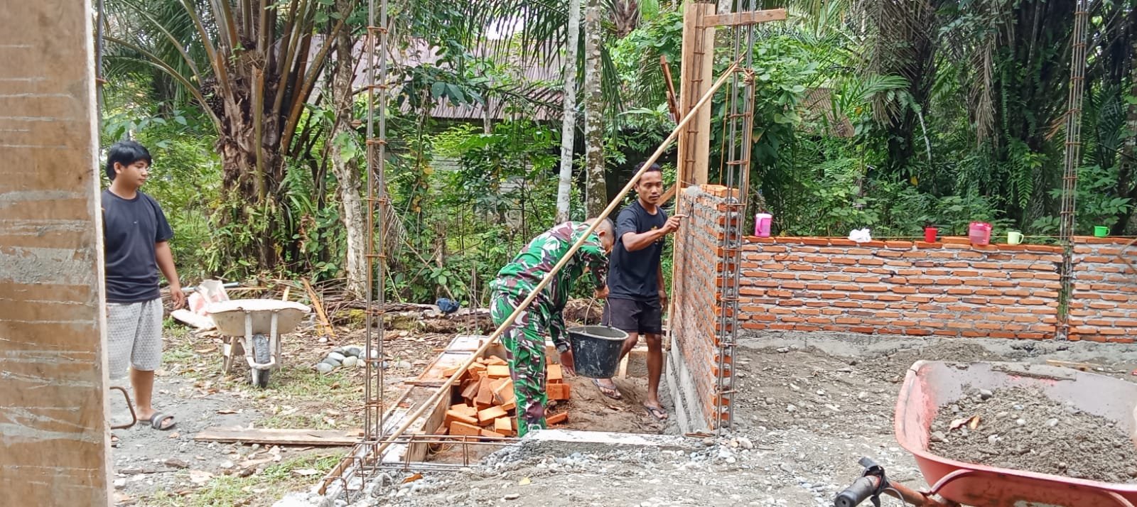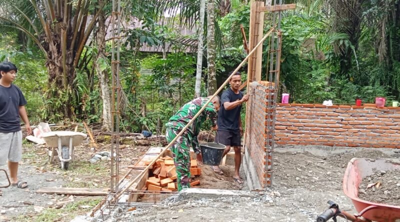 Babinsa Posramil 05/PC Terus Bantu Warga dalam Pembangunan Rumah di Wilayah Binaannya