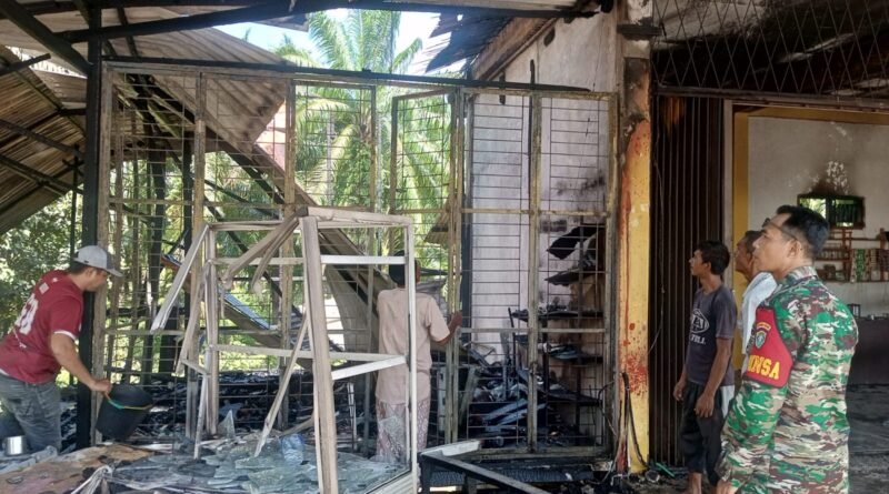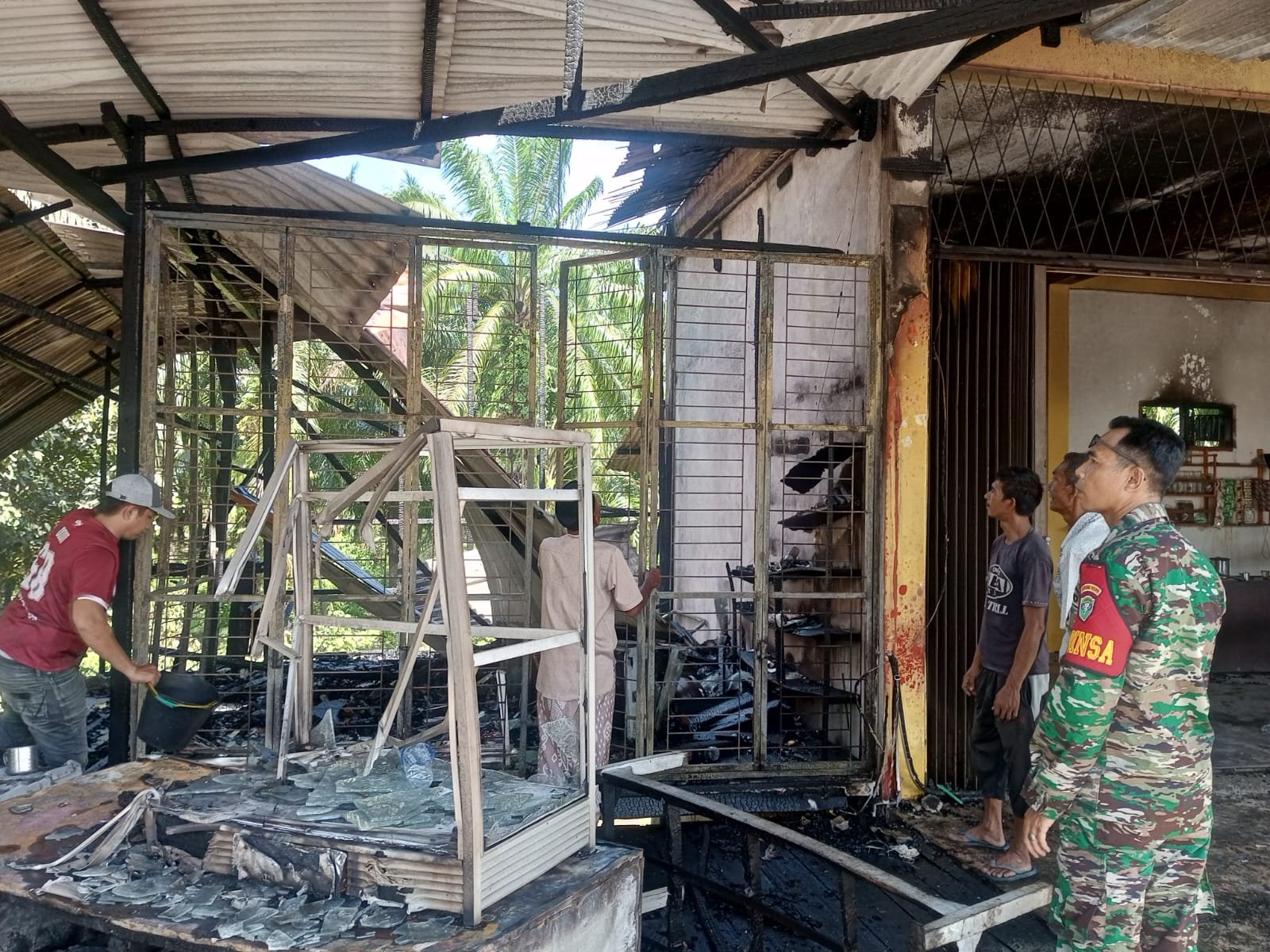 Selangkapnya......ACEH BARAT – Babinsa Koramil 03/Kaway XVI, Serda Darma, turun langsung ke lokasi kebakaran satu unit toko kain