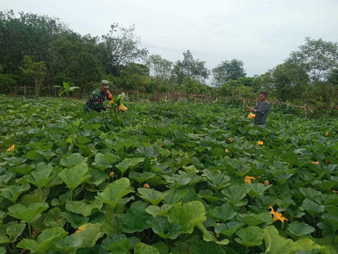 Babinsa Posramil 05/PC Dampingi Petani dalam Pengecekan Tanaman Labu
