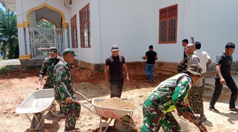 Selangkapnya......Nagan Raya – Anggota Posramil Tadu Raya Kodim 0116/Nara bersama warga melaksanakan gotong royong meratakan pasir di kompleks
