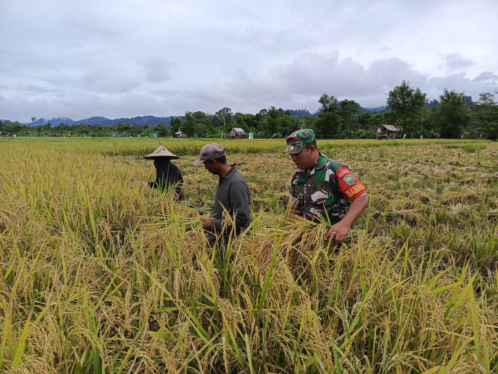 Babinsa Koramil 03/Kaway XVI Cek dan Tinjau Panen Padi di Desa Meunasah Buloh