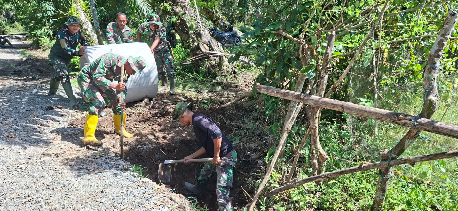 Selangkapnya......NAGAN RAYA – Di antara hamparan tanah yang perlahan berubah rupa, semangat prajurit TNI terus menyala. Proses pembuatan
