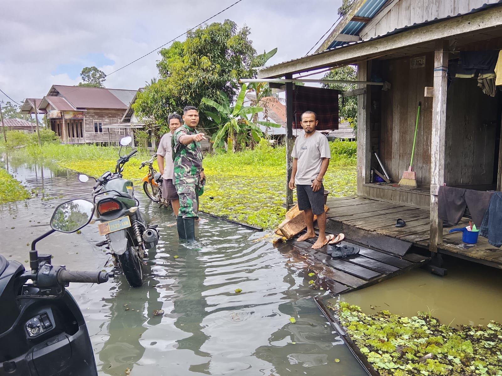 Balangan – Babinsa Koramil 1001-05/Lampihong, Kopda Ferdi, menghimbau warga binaannya agar tetap waspada terhadap potensi banjir menyusul curah hujan yang cukup tinggi yang terjadi di wilayah Kalimantan Selatan.