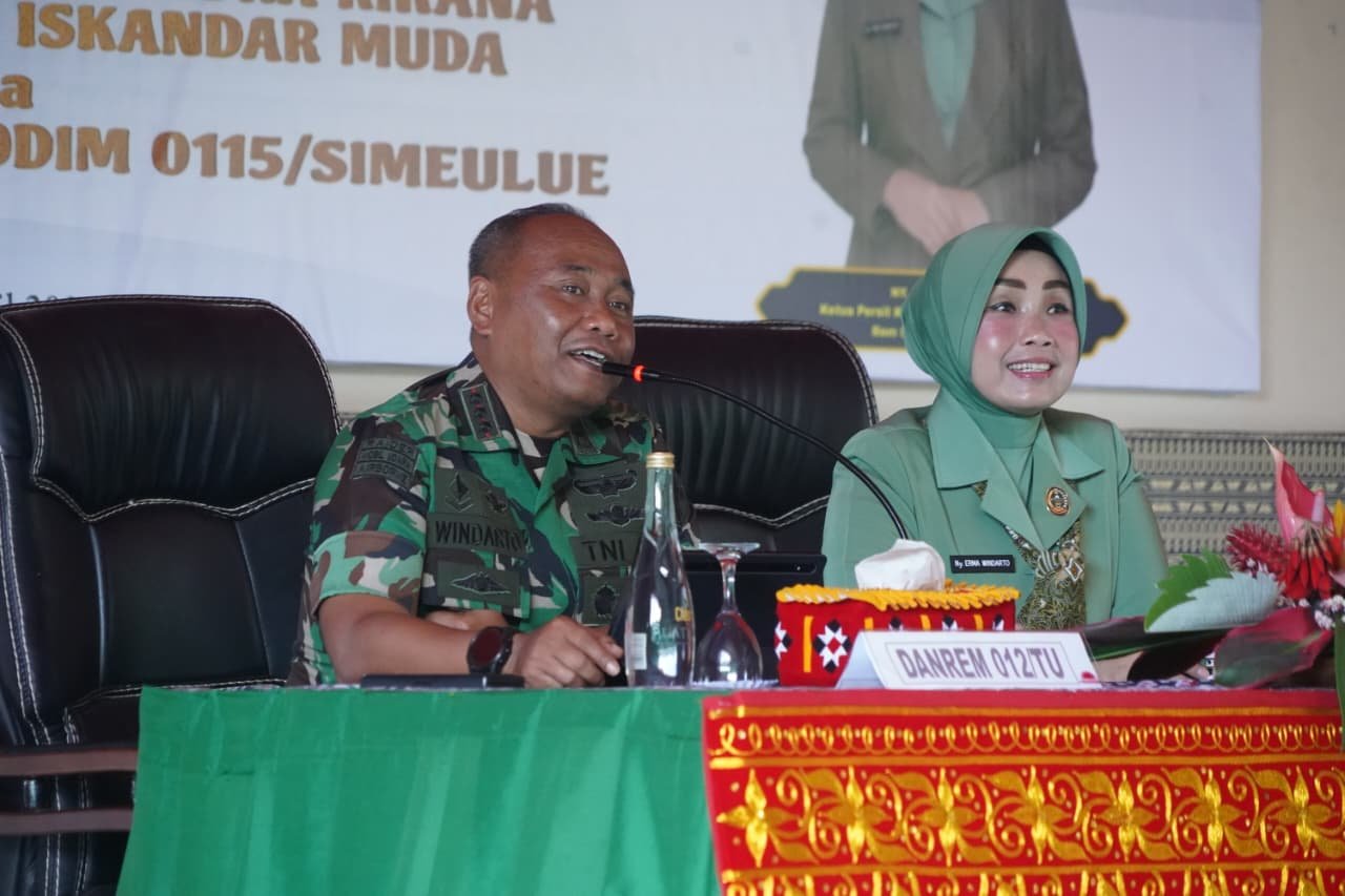 Simeulue – Danrem 012/TU Kolonel Inf Windarto S.Sos., M.M., bersama Ketua Persit Kartika Chandra Kirana Koorcabrem 012 PD Iskandar Muda Ny. Erma Windarto, melaksanakan kunjungan kerja ke Kodim 0115/Simeulue dalam rangka mempererat silaturahmi serta meninjau langsung kondisi satuan dan prajurit di wilayah tersebut.