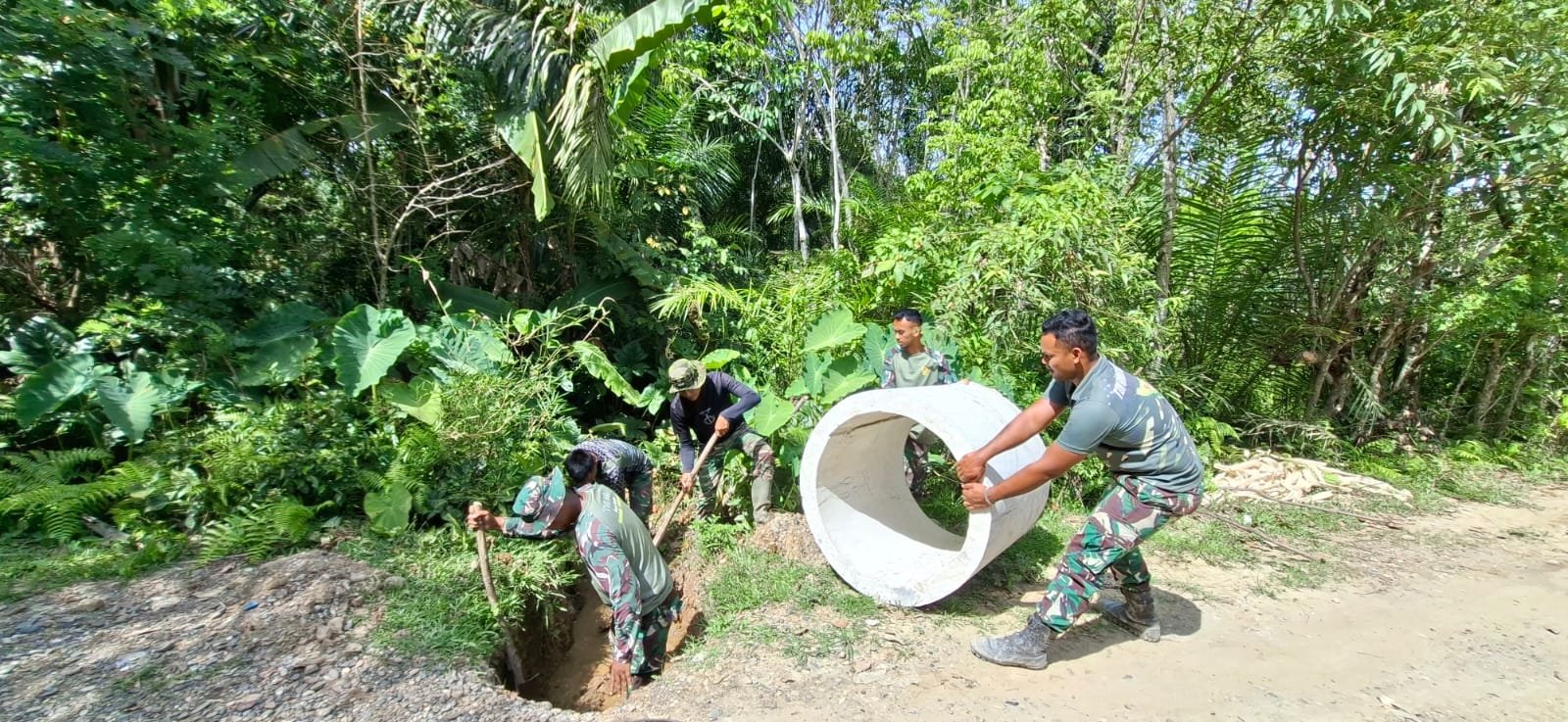 Di Bawah Terik Matahari, Satgas dan Warga Pasang Gorong-Gorong