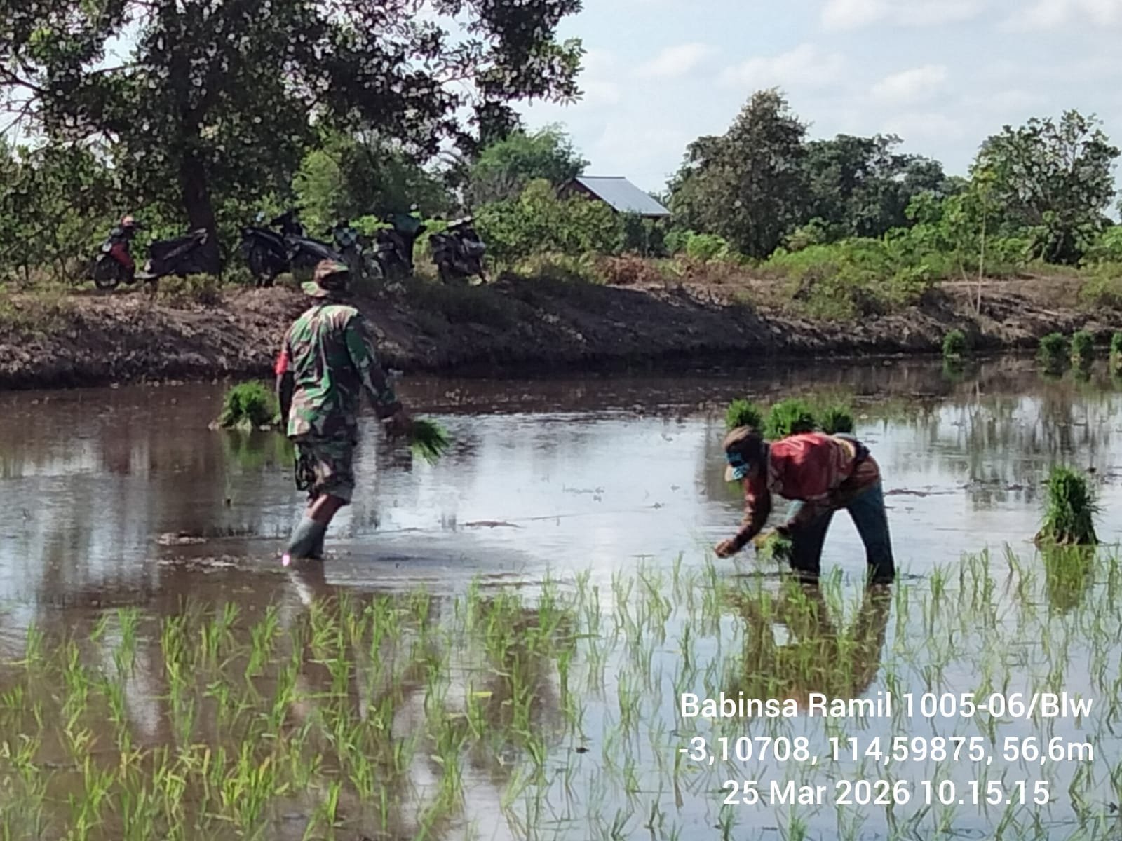 Barito Kuala – Babinsa Koramil 1005-06/Belawang, Pelda Wahyudi, melaksanakan kegiatan pendampingan Luas Tambah Tanam (LTT) di wilayah Kecamatan Belawang, Kabupaten Barito Kuala. Kegiatan ini dilakukan bersama para petani setempat di areal persawahan yang tengah memasuki musim tanam padi. pada Rabu (25/03/2026).