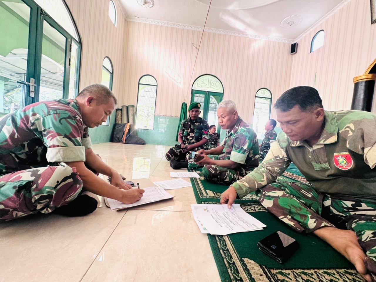 TAPIN – Suasana kebersamaan mewarnai Mushola Al-Muizzu Kodim 1010/Tapin saat prajurit, PNS, serta masyarakat sekitar menunaikan zakat fitrah melalui panitia Badan Amil Zakat yang telah dibentuk, Senin (16/3/2026).