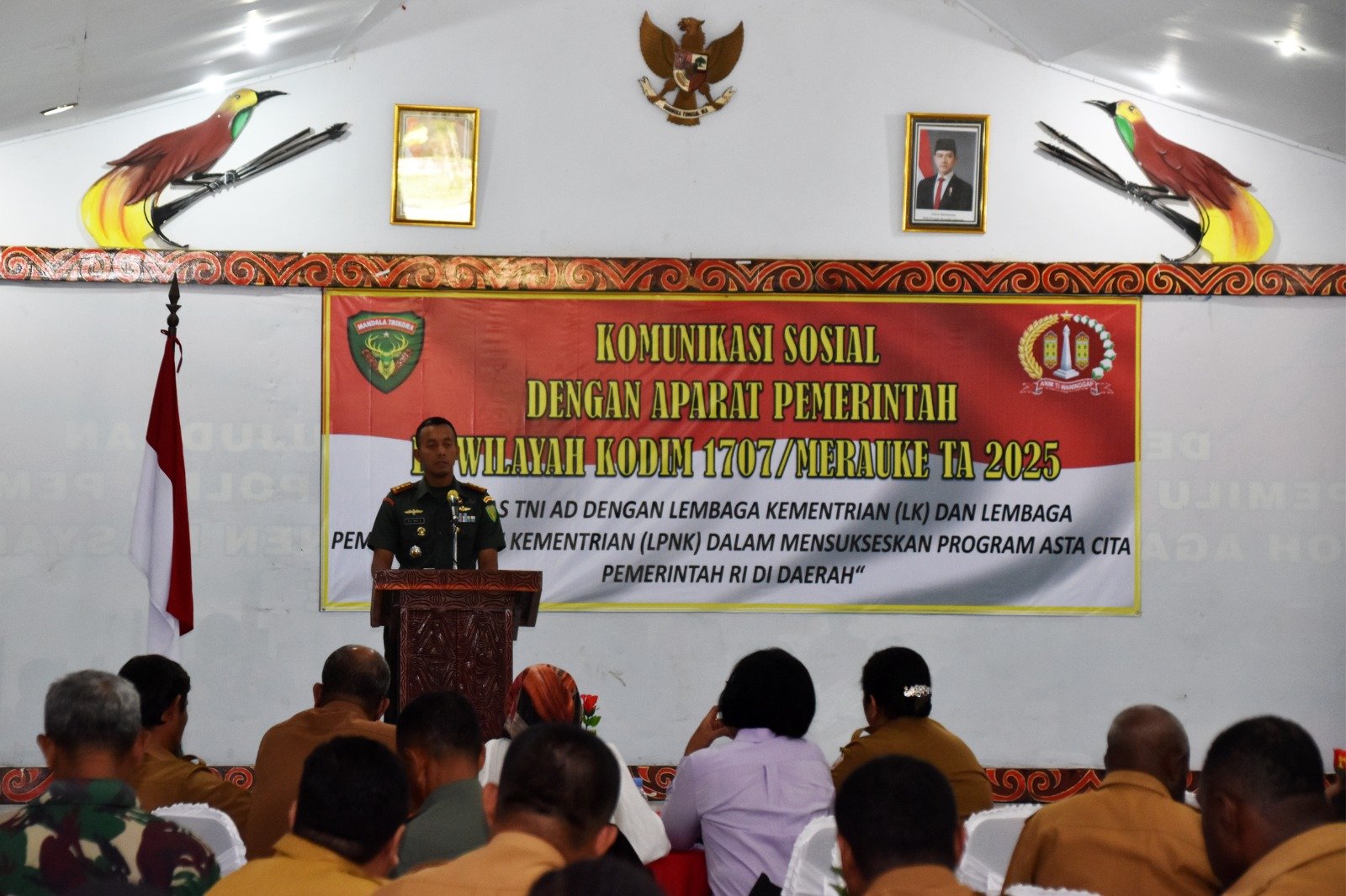 Hal tersebut disampaikan langsung oleh Dandim 1707/Merauke Letkol Czi Dili Eko Setyawan, S.Ak., M.Han saat memberikan sambutan pada kegiatan Komsos bersama Aparat Pemerihtah Tahun 2025 bertempat di Aula Anim Ha Makodim 1707/Merauke Jln. Raya Mandala Kota Merauke, Kab. Merauke – Provinsi Papua Selatan. Selasa (25/11/25).
