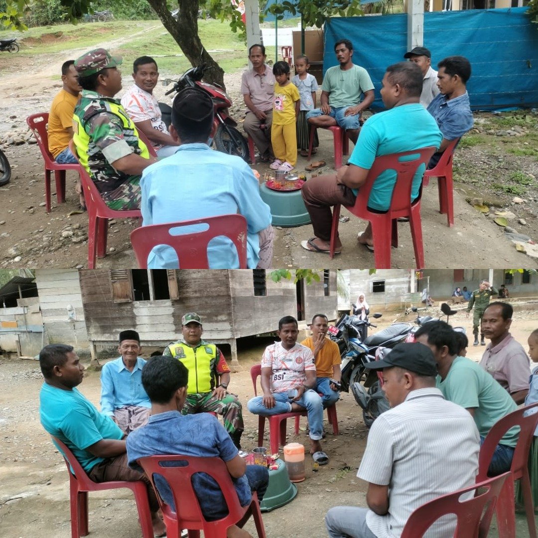 ACEH BARAT — Dalam rangka mempererat hubungan antara TNI dan masyarakat, Babinsa Koramil 11/WT, Koptu Caniago, melaksanakan kegiatan komunikasi sosial (Komsos) dengan warga binaan di Desa Rambong Pinto, Kecamatan Woyla Timur, Selasa (03/02/2026).