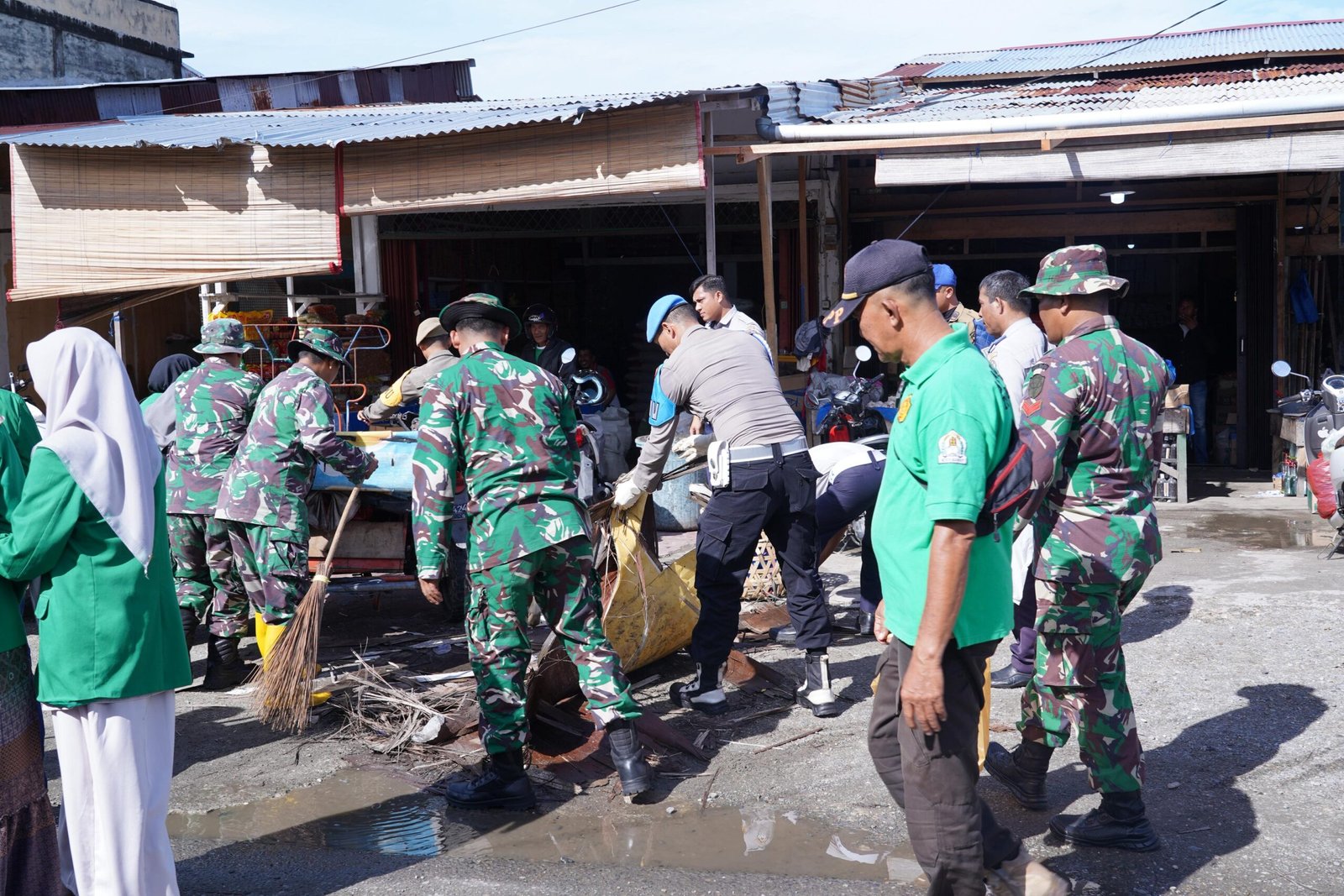 Usai apel, para peserta dibagi ke dalam beberapa sektor pembersihan, mulai dari saluran air, area parkir, lorong-lorong pasar, hingga fasilitas umum lainnya. Suasana kebersamaan tampak jelas ketika aparat, mahasiswa, dan masyarakat bekerja sama tanpa sekat, penuh keakraban dan solidaritas.
