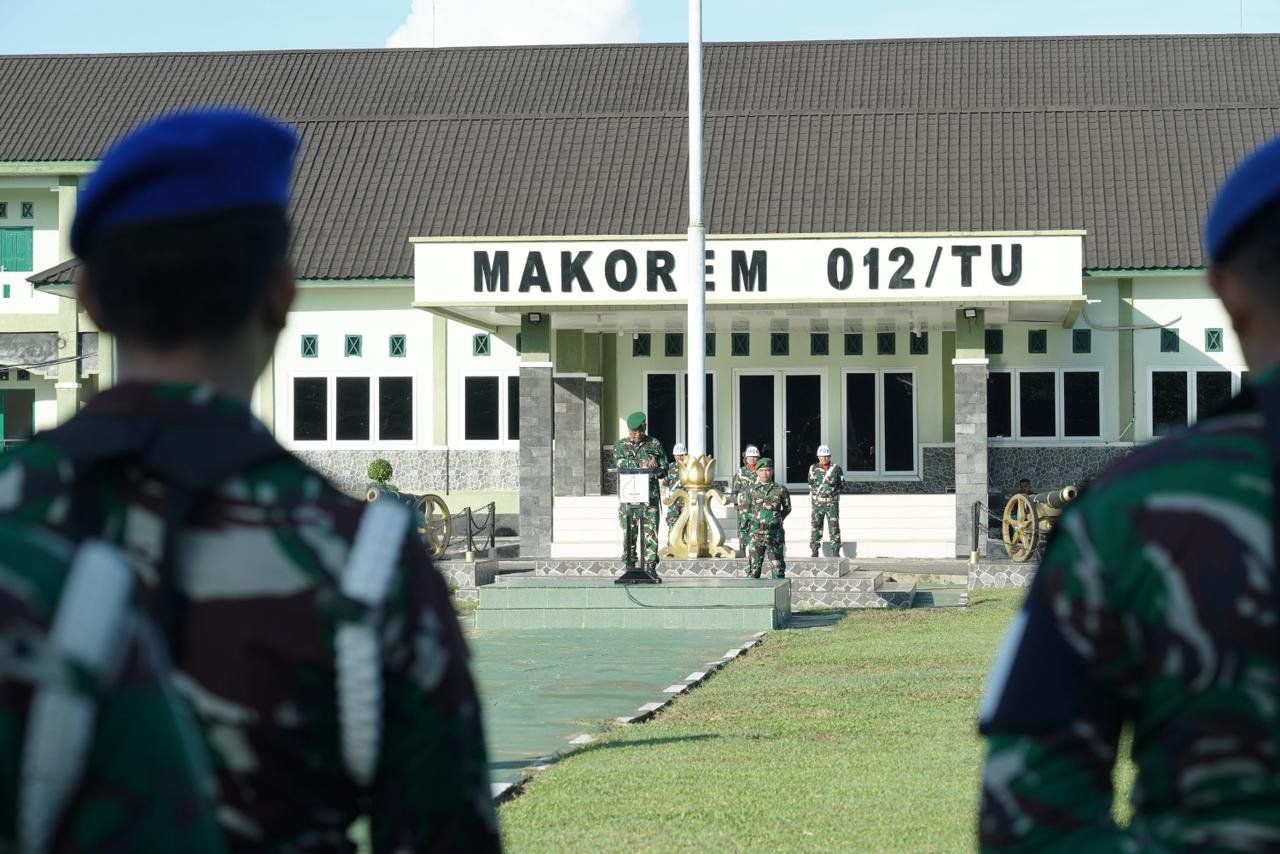Meulaboh – Korem 012/Teuku Umar menggelar upacara bendera bulanan di Lapangan Makorem 012/TU yang berlangsung dengan khidmat dan tertib. Upacara ini diikuti oleh seluruh prajurit, PNS, serta unsur satuan jajaran Korem 012/TU, Senin (20/04/2026).