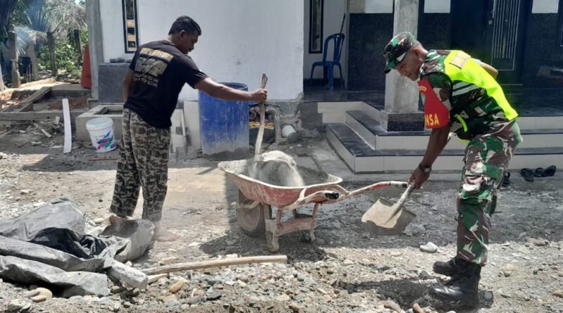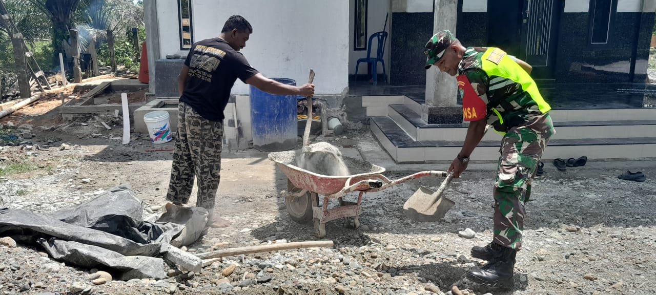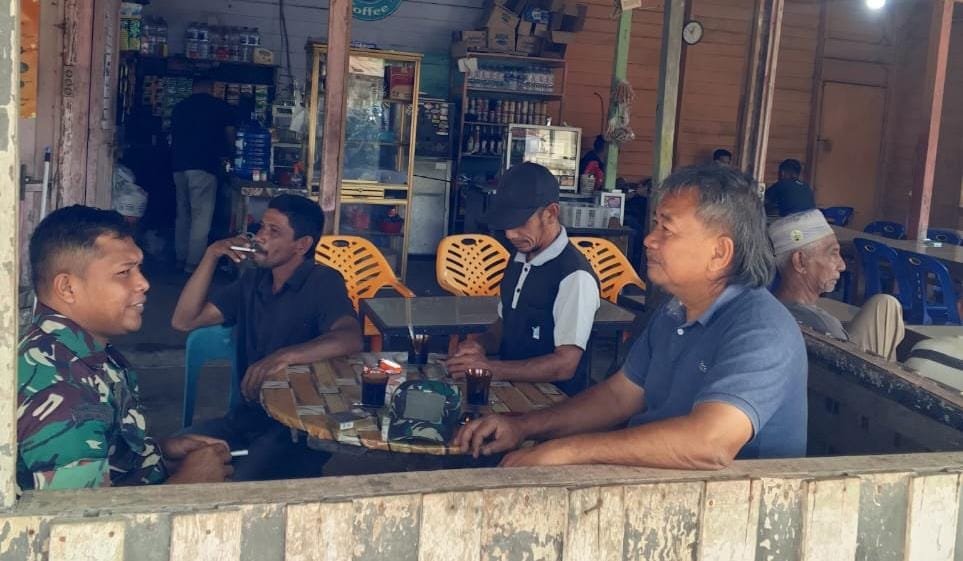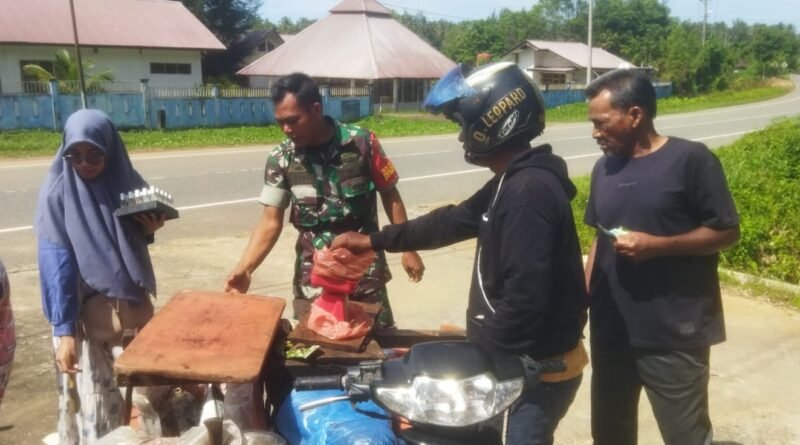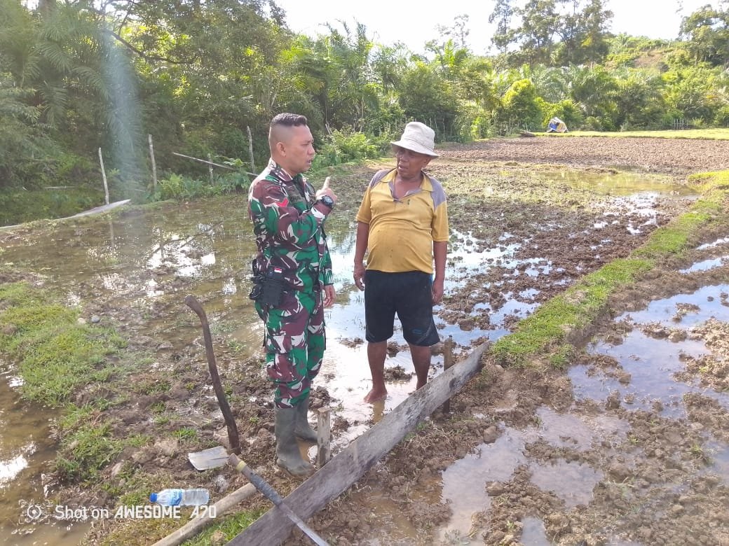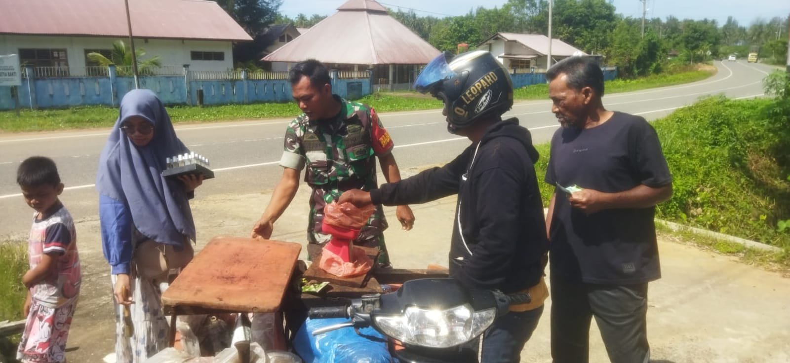 ACEH BARAT — Babinsa Posramil 05/Pante Ceureumen Kodim 0105/Aceh Barat, Koptu Azhari, bersama Bhabinkamtibmas Pante Ceureumen, Bripka Hari,