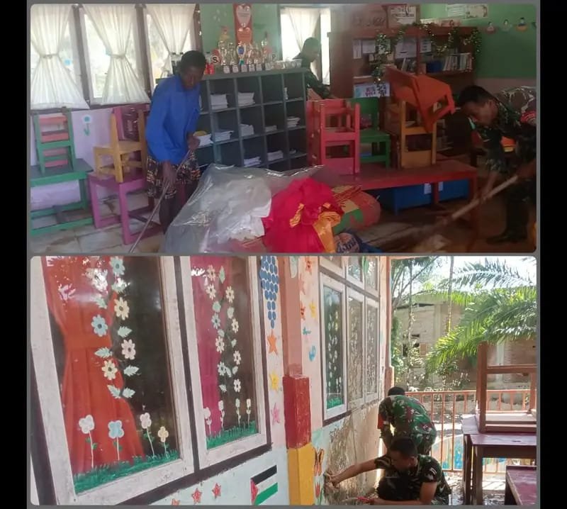 Kepala TK yang hadir di lokasi menyampaikan rasa terima kasih atas bantuan cepat dari Babinsa dan warga. Ia menjelaskan bahwa banjir yang datang mendadak menyebabkan sebagian peralatan sekolah rusak serta bangunan dipenuhi lumpur. “Kalau kami bersihkan sendiri, mungkin butuh waktu lebih lama. Alhamdulillah, dengan bantuan TNI dan warga, pembersihan hari ini jauh lebih cepat,” katanya.